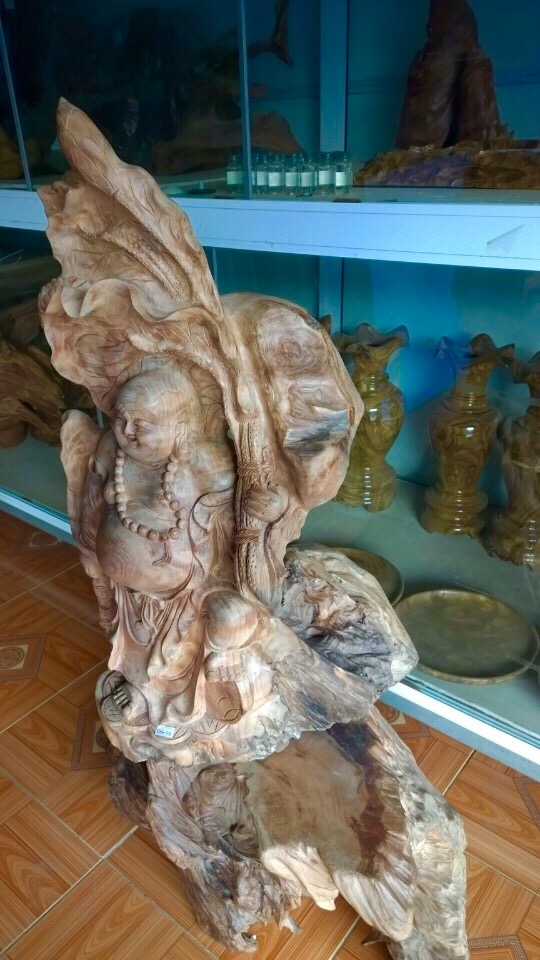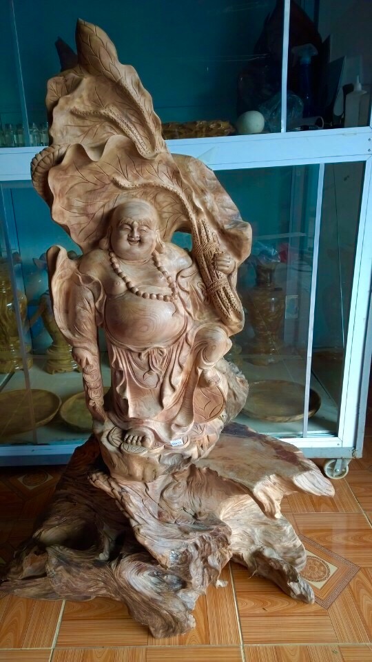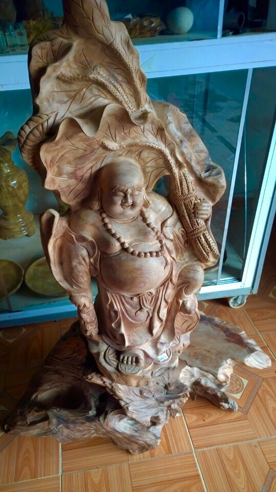 Tượng di lặc: Kích thước cao 70, ngang 39, sâu 48 cm. Tượng di lặc cầm bó sen gỗ ngọc am Hà giang, chất gỗ sụ xoắn cực đẹp, mùi thơm phức, được chế tác từ các nghệ nhân làng nghề Đông Giao, nét đục sắc nét mang tính nghệ thuật, thể hiện được...